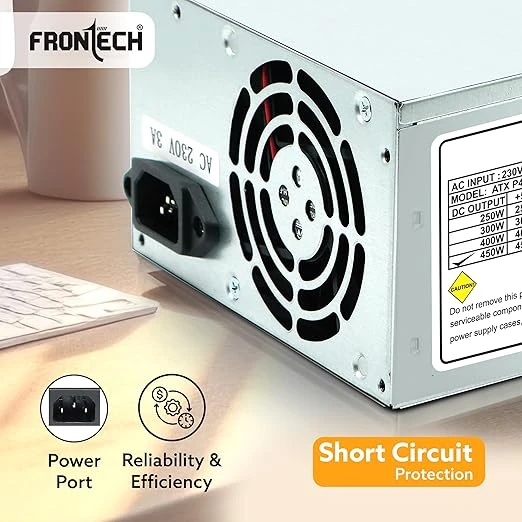 FRONTECH 450 Watts SMPS Power Supply Unit, Compliant with ATX 12V, 20/24 Pin Main Power, Power Protection, (PS-0005, Grey)