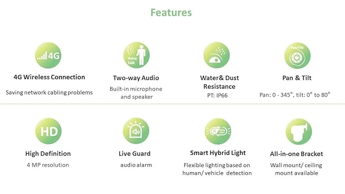 3. Support 4G LTE data transmission & Provide real-time security via built-in two-way audio