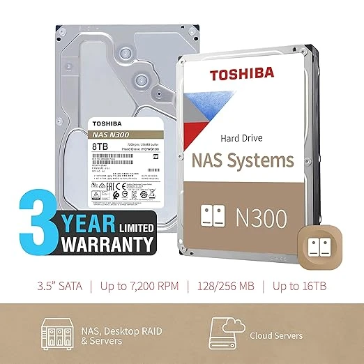 Toshiba N300 Internal 8TB NAS HDD 7200 RPM Hard Drive