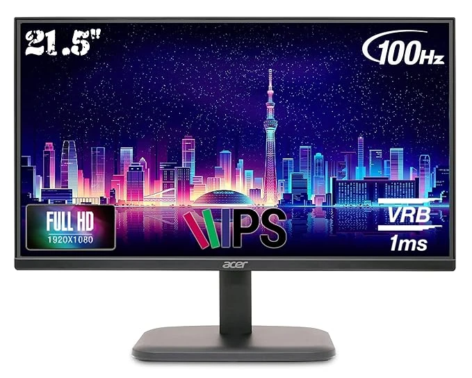 Acer EK220Q Ebi 21.5 Inch IPS Full HD (1920x1080) Backlit LED LCD Monitor I 1 MS VRB, 100Hz Refresh I 250 Nits I 99% SRGB I HDMI & VGA Ports with HDMI Cable I AMD Free Sync I Eye Care Features (Black)