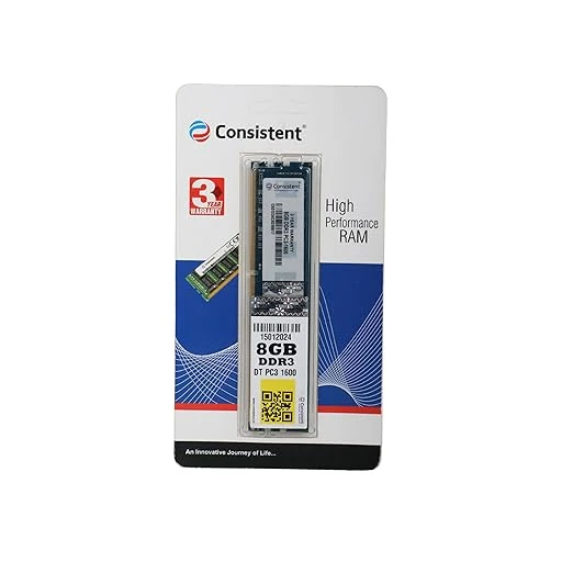 Consistent 8GB DDR3 1600MHz Desktop RAM (Memory) U-DIMM | Long-DIMM | DT PC3-1600 Single Channel Memory with 3 Years Manufacturer Warranty (Made in India)