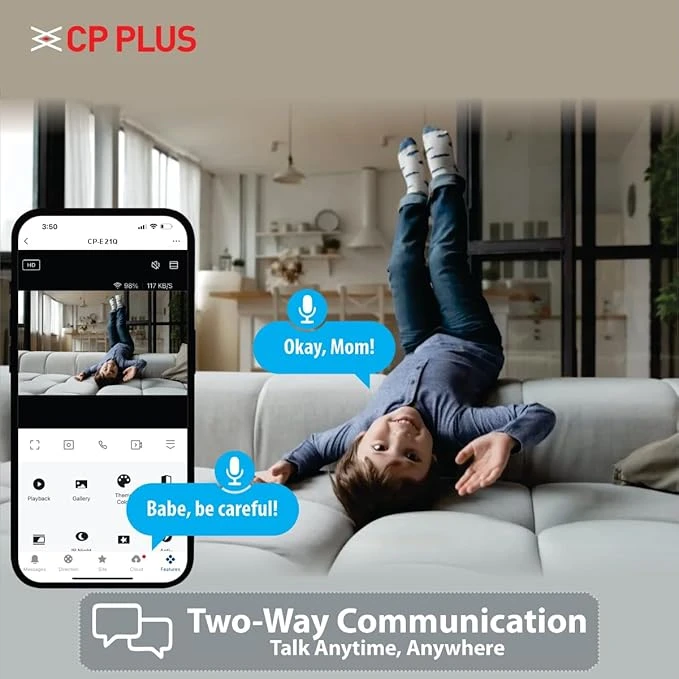 2. 360° Pan & 71° Tilt for Full Coverage – CP PLUS Wi-Fi CCTV camera 360 degree monitors every angle of your room with wide viewing capability, leaving no blind spots unattended.