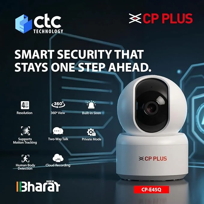 3. CTC Cyber Secure Protection – Built with advanced CP PLUS Cyber Trusted Core (CTC) technology, this wifi cctv camera ensures your video data is encrypted and safe, protecting your family’s privacy from cyber threats and hacking.