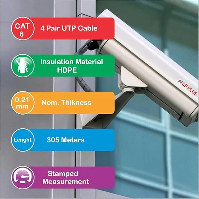 CP PLUS CP-FUT-6TSRH-100 Cat 6 Ethernet 100 meter Cable with high speed connectivity | Universal compatibility | Secure and Stable Connection | 24 AWG 4 Pair UTP Cable