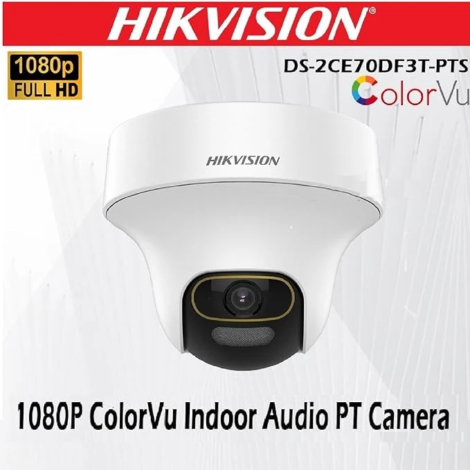HIKVISION 2MP ColorVu Audio PT 360° Built-in Mic IR White Light with Solid Light Alarm Motion Detection 2MP HD Indoor CCTV Camera [DS-2CE70DF3T-PTS] for 2MP & Above DVR + BNC/DC, White